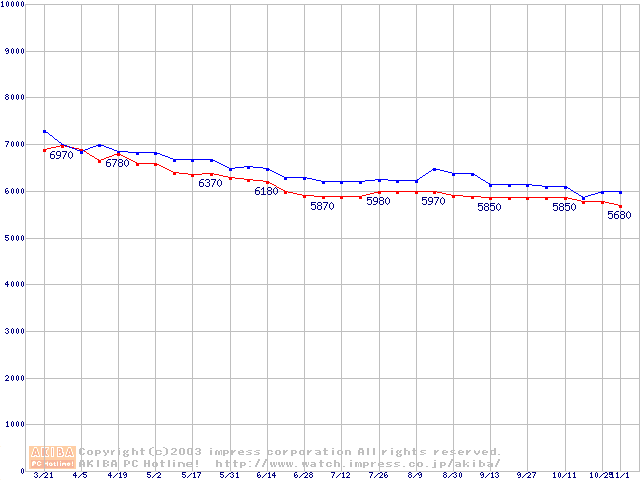 | Fireball 3 (5400rpm,UltraATA/133,2MB,FDB)の最安値推移 |