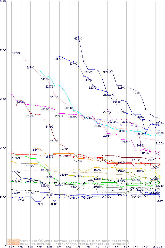 2.5インチHDD主要製品の最安値推移