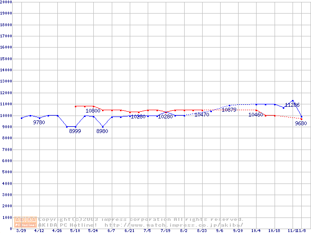 | [↑前グラフ]: | 2.5インチHDD主要製品の最安値推移 |