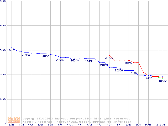 | [↓次グラフ]: | 2.5インチHDD 80GB以上(9.5mm厚)の最安値推移 |