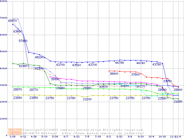 CPU主要製品(最安値2万円~3万円未満)の最安値推移