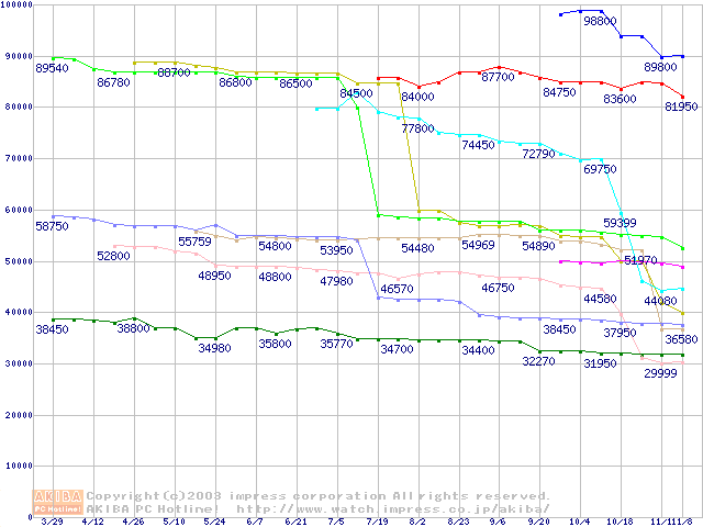 CPU主要製品(最安値2万円~3万円未満)の最安値推移