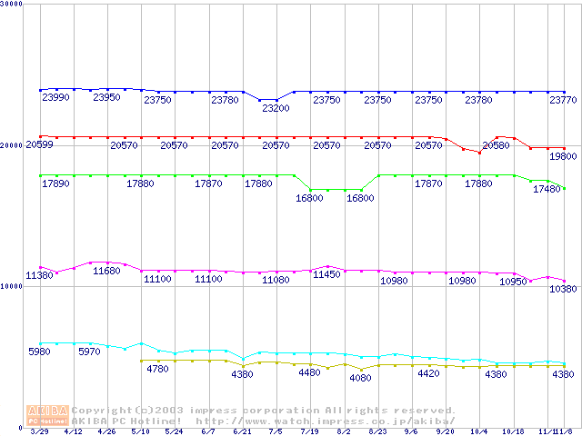 | [↓次グラフ]: | Socket 370・FSB 100MHzの最安値推移 |