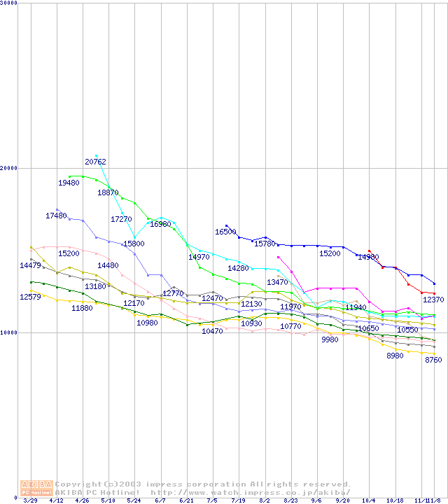 HDD 100~160GB未満(7200rpmクラス)の最安値推移