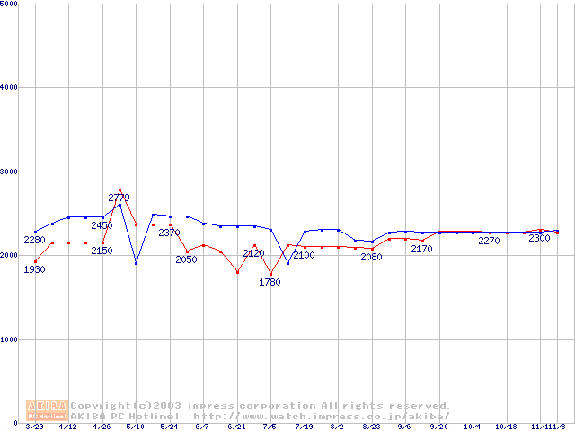 256MBモジュールの最安値推移