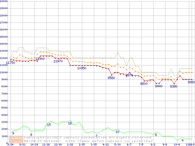 WD Caviar (7200rpm,UltraATA/100,2MB)の最安値推移
