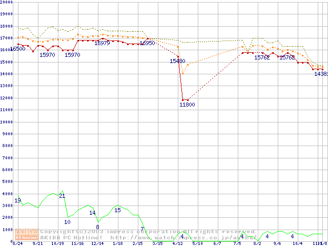 Socket 478 (micro-PGA,FSB 400MHz,L2 512KB,Northwood)の最安値推移