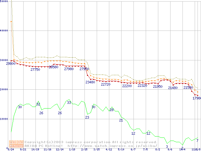 Pentium 4 2.53GHz リテールパッケージの価格推移