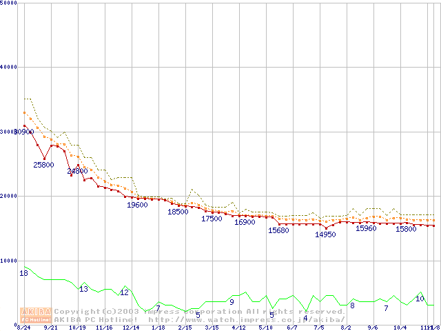 MKシリーズ (9.5mm,5400rpm,16MB,FDB)の最安値推移