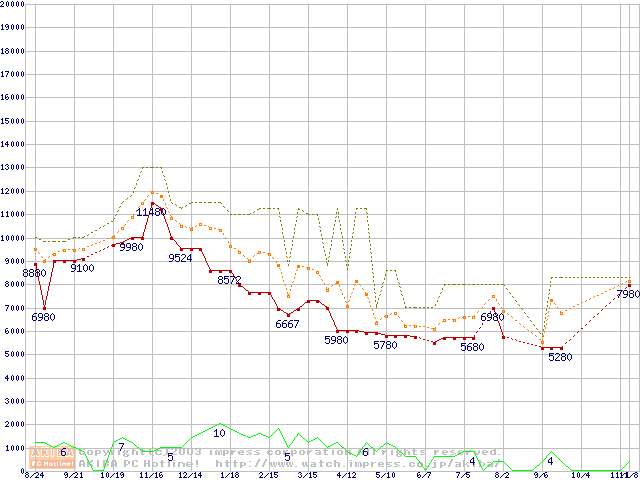 PC2100(DDR266) DDR SDRAM DIMM(CL 2.0) ECC対応 Registeredタイプの最安値推移