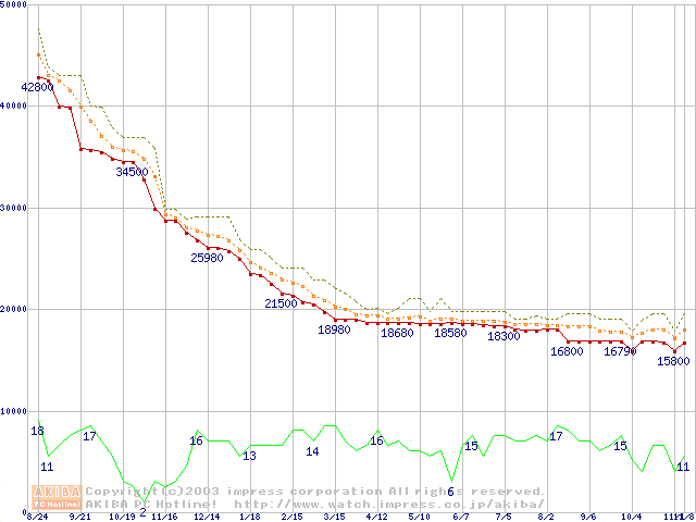 MKシリーズ (9.5mm,4200rpm,2MB,FDB,30GB/Platter)の最安値推移