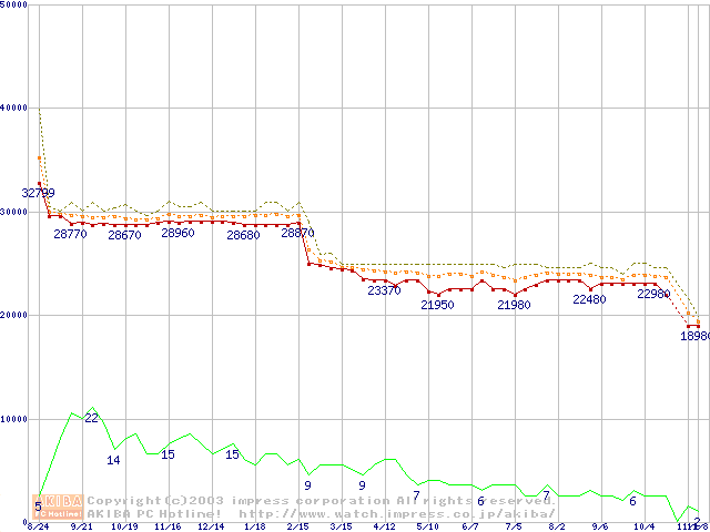 Socket 478 (micro-PGA,FSB 400MHz,L2 512KB,Northwood)の最安値推移