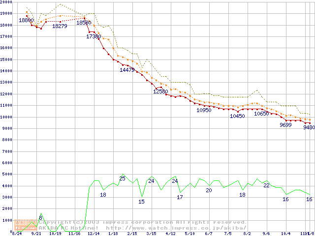 DiamondMax 16 (5400rpm,UltraATA/133,2MB,80GB/Platter,FDB)の最安値推移
