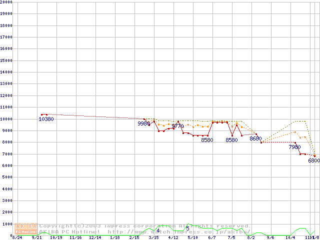 SpinPoint V60 (5400rpm,UltraATA/100,2MB)の最安値推移