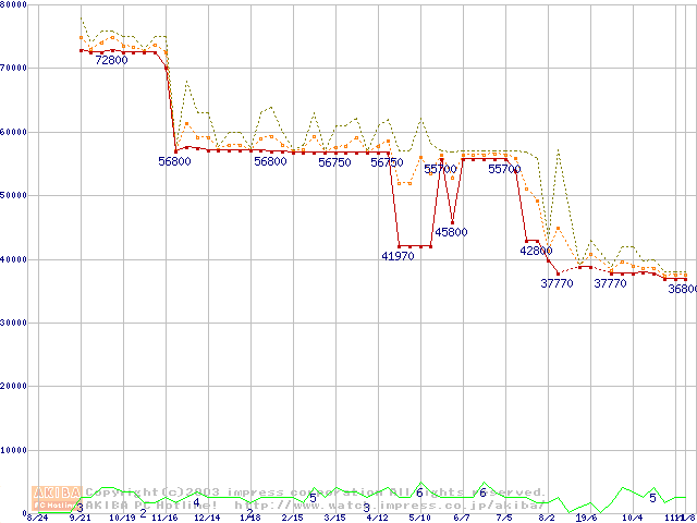 Socket 603 (micro-PGA,FSB 400MHz,L2 512KB,Prestonia)の最安値推移