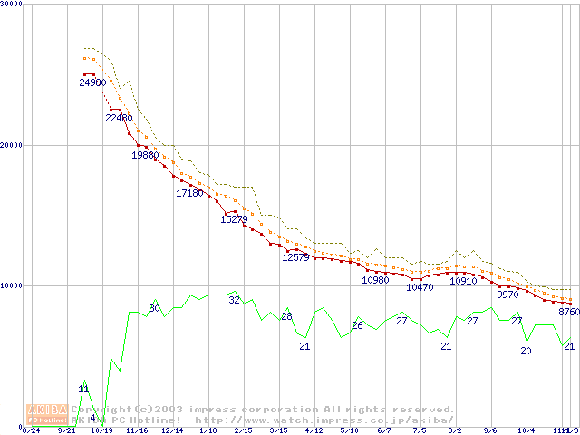 Deskstar 180GXP (7200rpm,2MB,UltraATA/100,FDB)の最安値推移