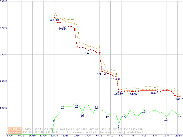 Athlon XP 2700+ (2.17GHz) リテールパッケージの価格推移
