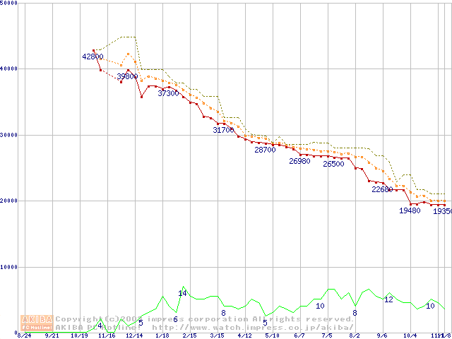 MKシリーズ (9.5mm,5400rpm,16MB,FDB)の最安値推移