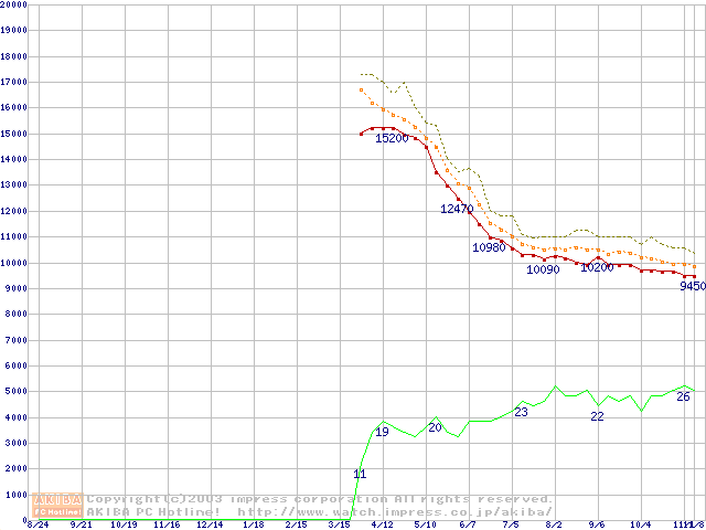 HDD主要製品の最安値推移
