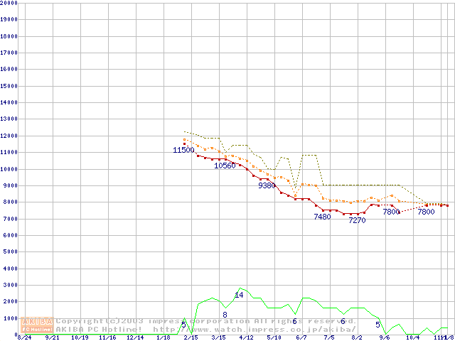 | Athlon XP 2100+ (1.73GHz) バルク(Thoroughbred)の価格推移 |