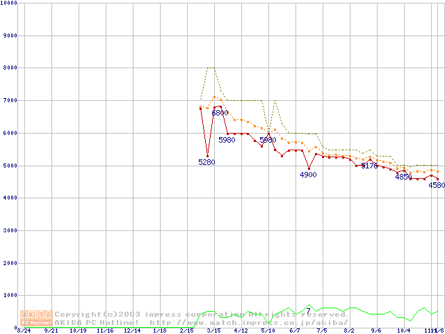 C3 1.0A GHz (Nehemiah) リテールパッケージの価格推移