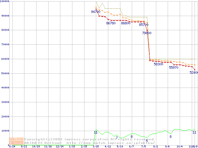 Xeon 3.06GHz(FSB533) リテールパッケージの価格推移