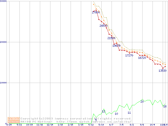 Barracuda 7200.7 (7200rpm,SerialATA,8MB,80GB/Platter,FDB)の最安値推移