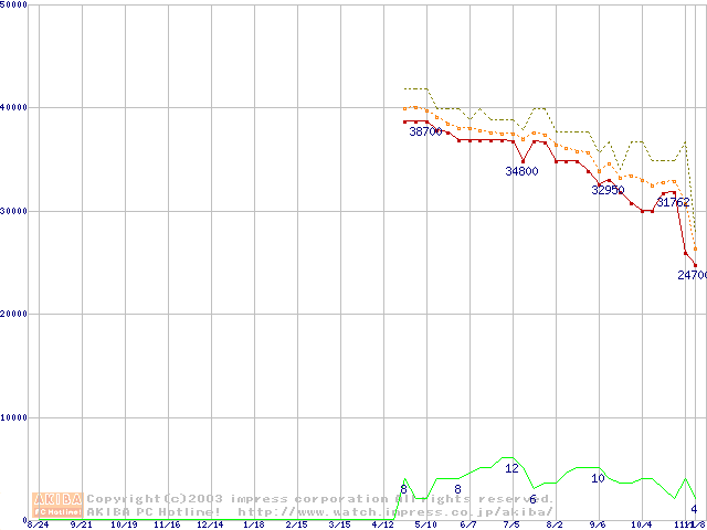 Opteron 240(1.4GHz) リテールパッケージの価格推移