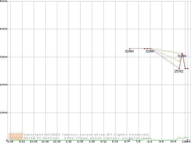 Socket A (OPGA,FSB 400MHz,L2 512KB,Barton)の最安値推移