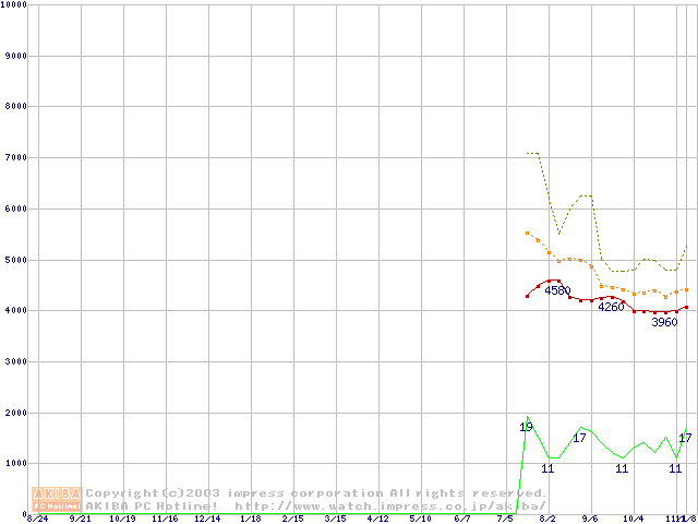 PC3200(DDR400) DDR SDRAM DIMMの最安値推移