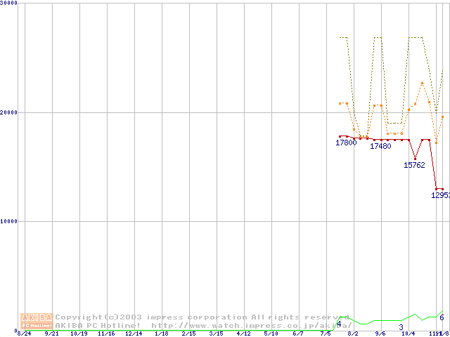 PC3700(DDR466) DDR SDRAM DIMMの最安値推移