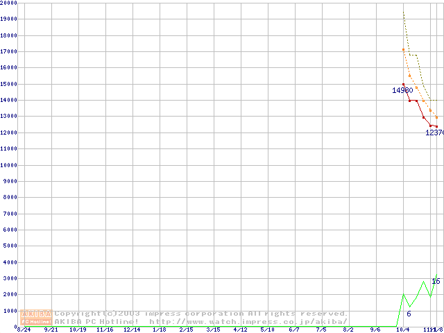 HDD主要製品(最安値1万円~1万5千円未満)の最安値推移