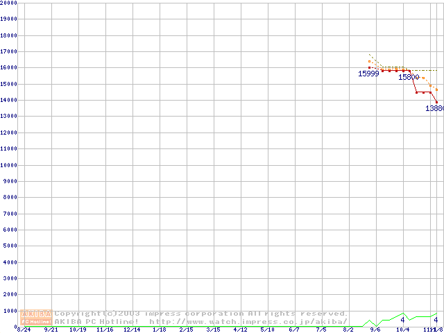 Travelstar DK23FB (9.5mm,5400rpm,UltraATA/100,8MB)の最安値推移