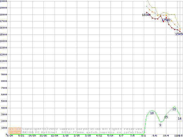 HDD主要製品(最安値1万5千円~2万円未満)の最安値推移