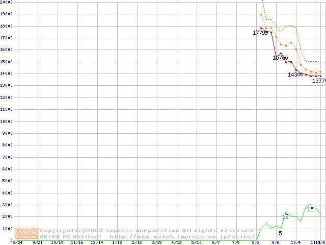 Travelstar 5K80 (9.5mm,5400rpm,UltraATA/100,8MB,FDB,40GB/Platter)の最安値推移