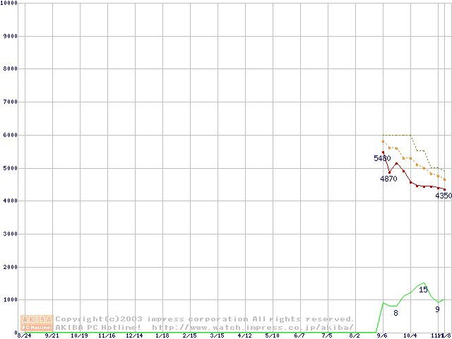 Socket A (OPGA,FSB 266MHz,L2 64KB,Applebred)の最安値推移