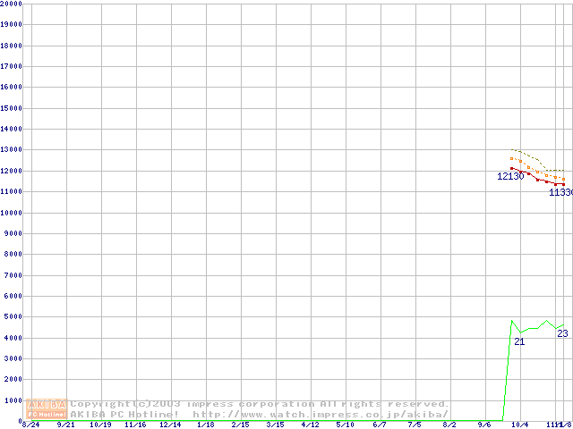 Socket 478 (micro-PGA,FSB 400MHz,L2 128KB,Northwood)の最安値推移
