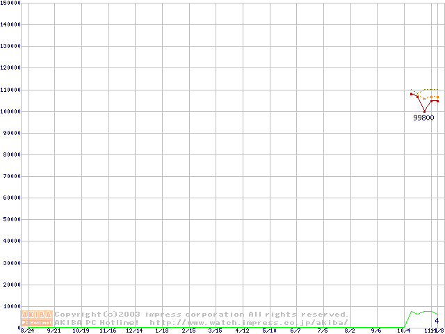 Socket 604 (micro-PGA,FSB 533MHz,L2 512KB,Prestonia)の最安値推移