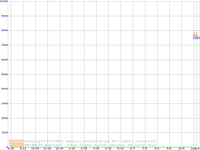 Socket A (OPGA,FSB 266MHz,L2 256KB,Thoroughbred)の最安値推移