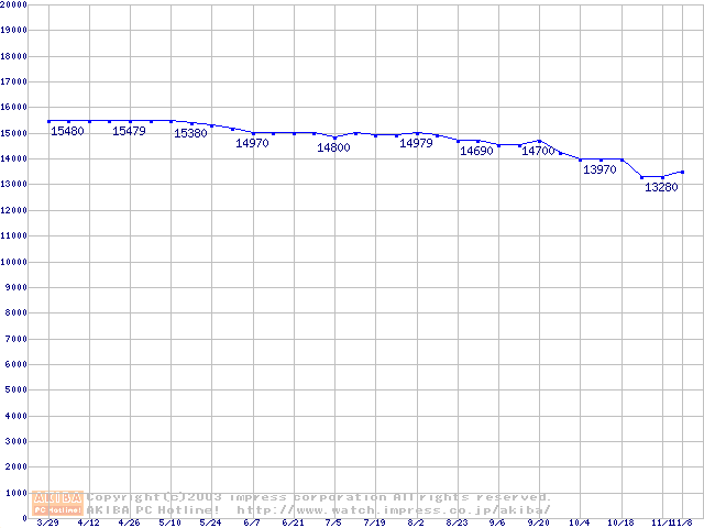 | [↓次グラフ]: | Travelstar DK23FB (9.5mm,5400rpm,UltraATA/100,8MB)の最安値推移 |