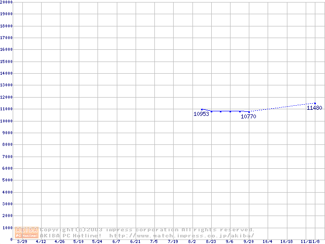 | [↑前グラフ]: | MHT20x0ATシリーズ (9.5mm,4200rpm,UltraATA/100,2MB,FDB,40GB/Platter,FDB)の最安値推移 |