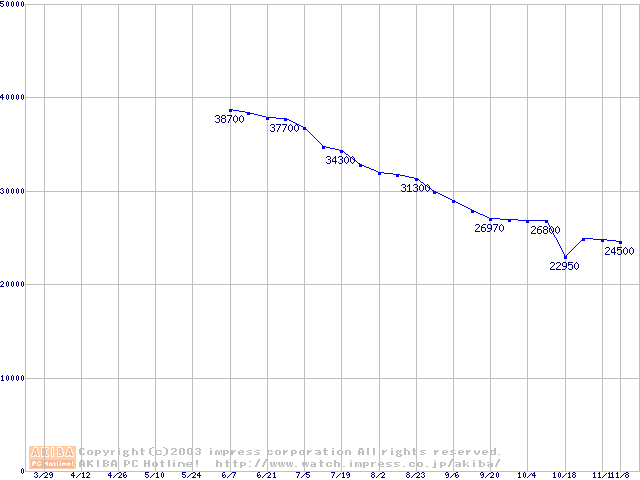 | [↑前グラフ]: | Travelstar DK23EA (9.5mm,4200rpm,UltraATA/100,512KB)の最安値推移 |