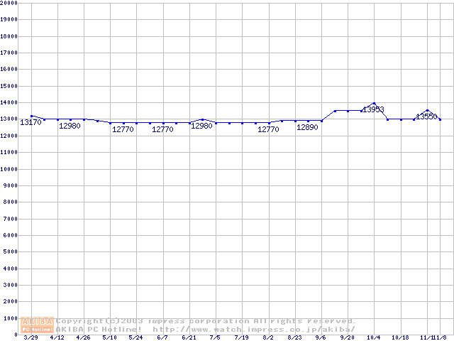 | [↓次グラフ]: | MHT20x0AHシリーズ (9.5mm,5400rpm,UltraATA/100,8MB,FDB,40GB/Platter,FDB)の最安値推移 |