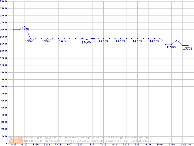 | [↓次グラフ]: | Socket A (PGA,FSB 266MHz,L2 256KB,Thunderbird)の最安値推移 |