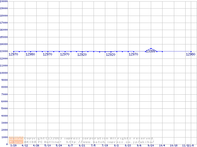 | [↑前グラフ]: | Socket 370 (FC-PGA2,FSB 133MHz,L2 512KB,Tualatin)の最安値推移 |
