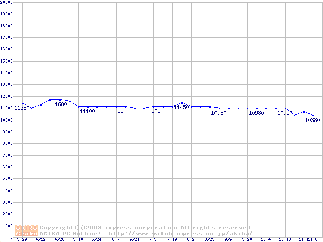 | [↑前グラフ]: | Socket 370 (FC-PGA2,FSB 133MHz,L2 256KB,Tualatin)の最安値推移 |