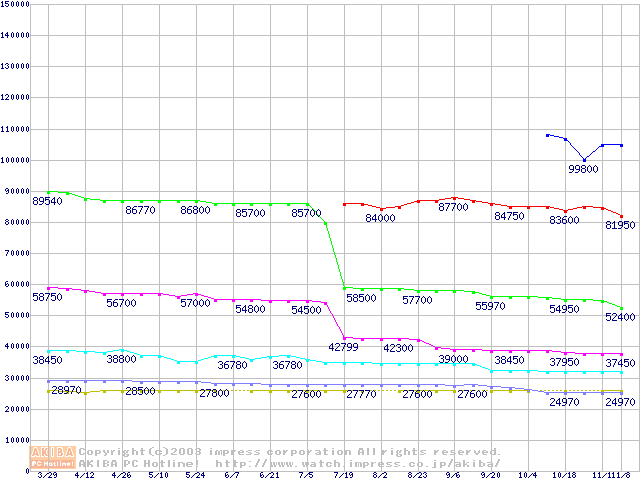 | [↓次グラフ]: | Socket 603 (micro-PGA,FSB 400MHz,L2 512KB,Prestonia)の最安値推移 |