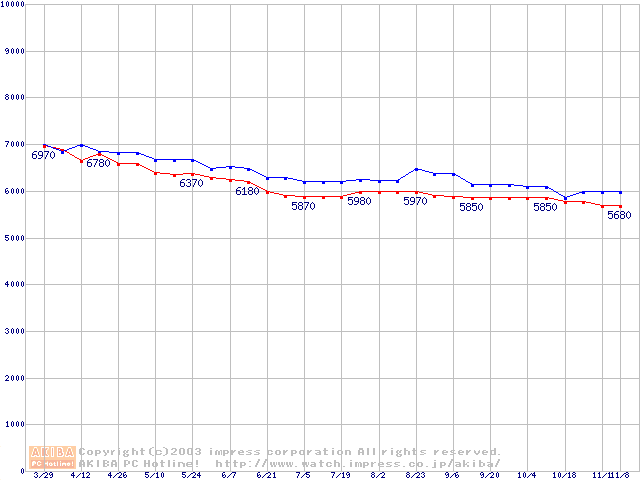 | Fireball 3 (5400rpm,UltraATA/133,2MB,FDB)の最安値推移 |