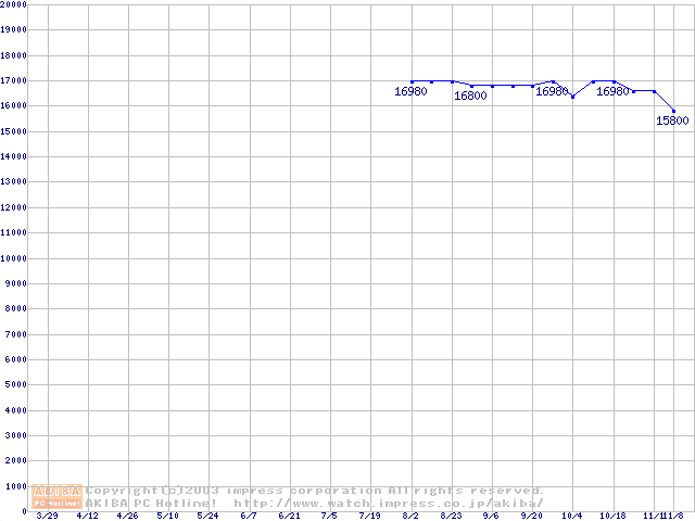 | [↓次グラフ]: | WD Caviar(Special Edition) (7200rpm,UltraATA/100,8MB)の最安値推移 |