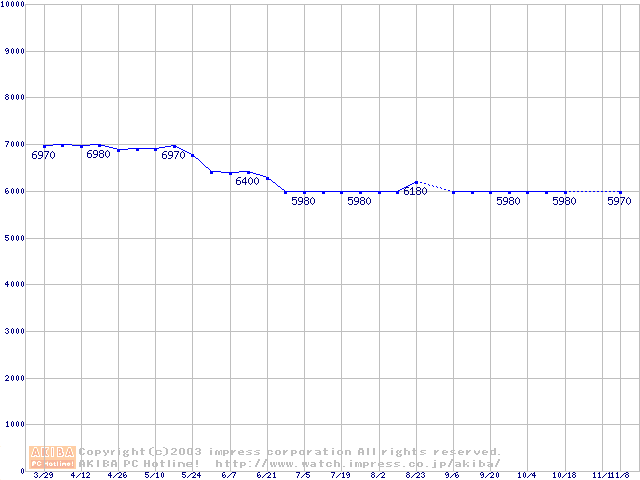 | [↑前グラフ]: | WD Caviar (7200rpm,UltraATA/100,2MB)の最安値推移 |